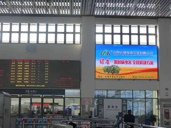 近幾年,隨著運(yùn)城市的快速發(fā)展,東部逐漸被開發(fā)利用,機(jī)場(chǎng)、高鐵站、客運(yùn)站也依次坐落于運(yùn)城東部,地理優(yōu)越,交通便利。2015年10月,綠康公司在運(yùn)城高鐵站投資的廣告牌投入使用,高鐵站人流量大,廣告牌處于入站口處,位置醒目。在進(jìn)一步加大公司知名度的同時(shí),也彰顯了綠康公司在山西省農(nóng)作物病蟲害防治方面的地位。
