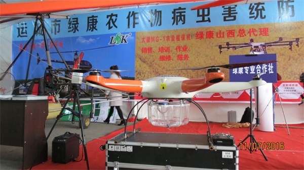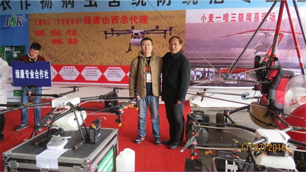 山西運(yùn)城綠康實(shí)業(yè)有限公司對(duì)這次農(nóng)展會(huì)非常重視,重點(diǎn)打造了兩大參展主題:一是在農(nóng)展館以北300米左右的農(nóng)資展廳設(shè)立了一個(gè)展位,主要用于綠康農(nóng)作物病蟲(chóng)害統(tǒng)防統(tǒng)治合作社展示飛防機(jī)械:美國(guó)原裝進(jìn)口安塔瑞斯MA-34 R582XB農(nóng)藥噴酒飛機(jī)2架,同時(shí)還配備各種地面防治機(jī)械設(shè)備多臺(tái),大疆MG-1農(nóng)藥植保機(jī)三臺(tái),工作人員向前來(lái)咨詢(xún)的群眾發(fā)放相關(guān)宣傳資料,熱情詳細(xì)介紹并現(xiàn)場(chǎng)進(jìn)行試飛表演,不少群眾看完以后怦然心動(dòng),紛紛向工作人員了解價(jià)格及使用方法。二是在相鄰的農(nóng)資展館設(shè)立了一個(gè)大展臺(tái),展臺(tái)上下,綠康的各種農(nóng)藥、資料擺放整齊,工作人員在現(xiàn)場(chǎng)向果農(nóng)發(fā)放資料袋,內(nèi)裝有相關(guān)農(nóng)藥的性能、用途等宣傳資料,附贈(zèng)有一張財(cái)神爺?shù)哪戤?huà)。直營(yíng)部的劉杰一經(jīng)理耐心的手把手教給果農(nóng)掃描年畫(huà)下方的二維碼,并接受果農(nóng)現(xiàn)場(chǎng)技術(shù)咨詢(xún),綠康工作人員誠(chéng)懇的態(tài)度和周到的服務(wù)受到參展果農(nóng)的一致好評(píng)。