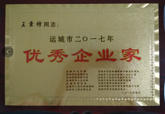 日前,由運(yùn)城市政府、市農(nóng)業(yè)委員會(huì)聯(lián)合市工商局、商務(wù)局、食品藥品監(jiān)督管理局等十四個(gè)行政管理部門共同為全市優(yōu) 秀企業(yè)及企業(yè)家授予表彰,我公司憑借多年來積累的可靠的產(chǎn)品質(zhì)量和良好的社會(huì)信譽(yù)度榜上有名,公司被評(píng)為“運(yùn)城市二零一七年度誠(chéng) 信企業(yè)”,公司領(lǐng)航人王章修董事長(zhǎng)被評(píng)為“運(yùn)城市二零一七年度優(yōu) 秀企業(yè)家”。在這個(gè)良好發(fā)展的平臺(tái)上,公司已制定出新發(fā)展的策略,同時(shí),也將會(huì)有更強(qiáng)的競(jìng)爭(zhēng)力和發(fā)展力,望全體員工團(tuán)結(jié)一致、齊心協(xié)力,與企業(yè)共同進(jìn)步、共同發(fā)展,書寫新畫卷。