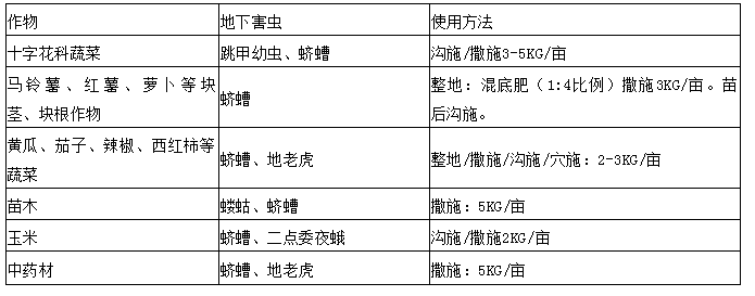 防治對象:大蒜根蛆 畝用量:5公斤